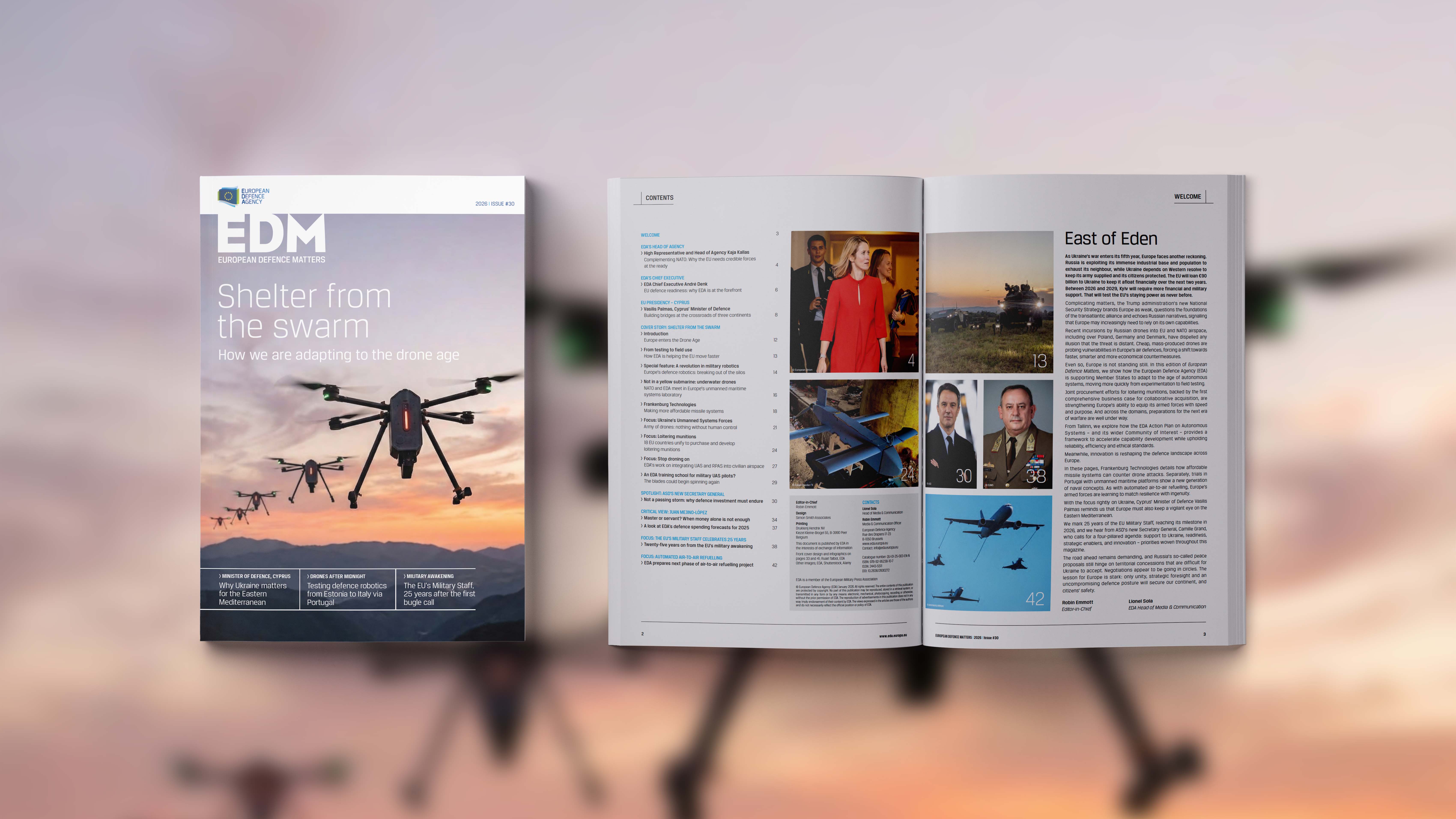 Highlight Shelter from the swarm: new EDM 30 Adapting to the drone age: from robotics and loitering munitions to air and maritime systems, how EDA is accelerating testing and field use. Read more
